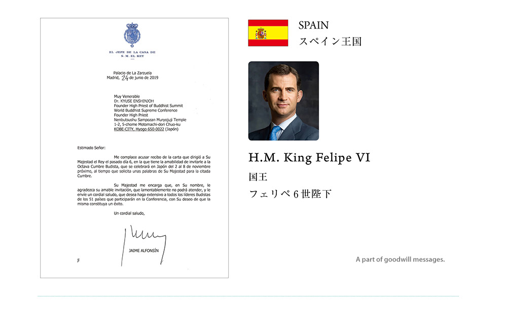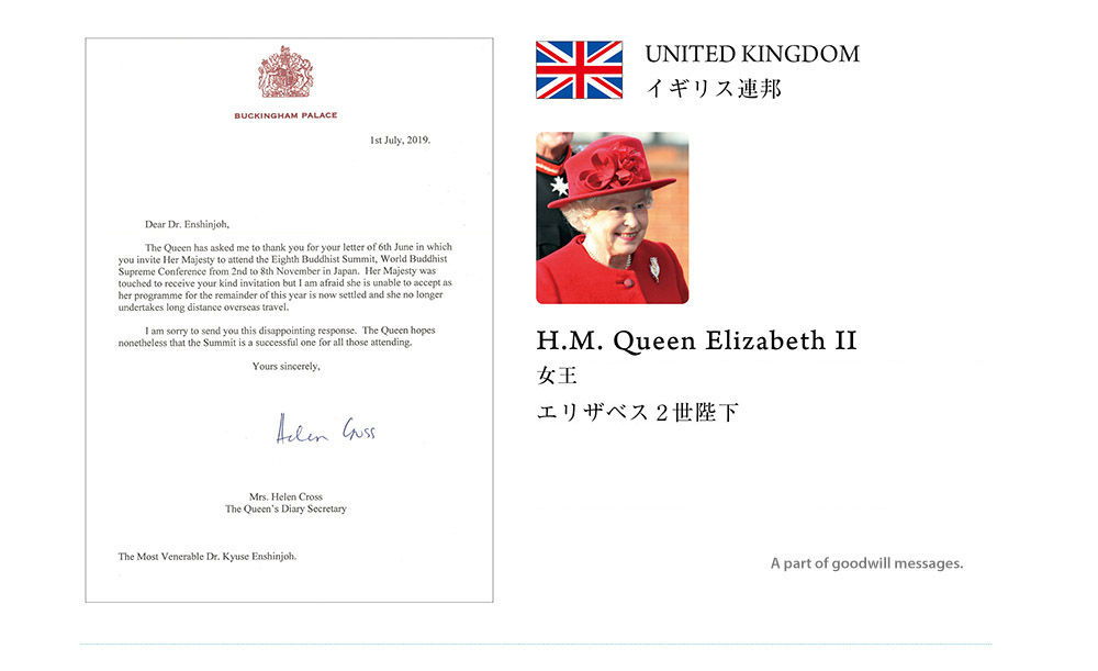 Goodwill messages from H.M. Queen Elizabeth II, H.E. the Secretary General of the United Nations, H.E. the President of the European Parliament, Royal Family members, Heads of State, national leaders, and cultural figures. Introduced here are a part of the goodwill messages.