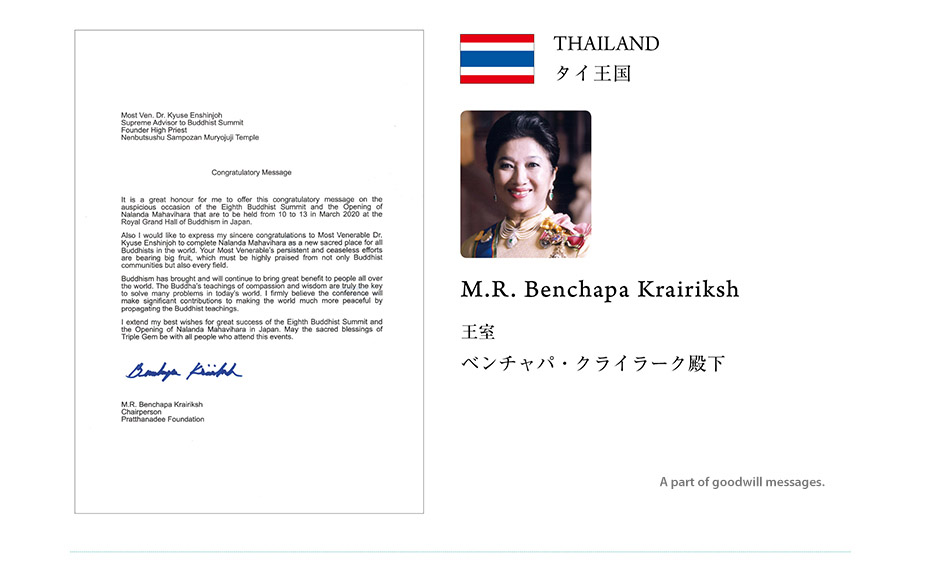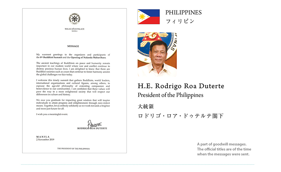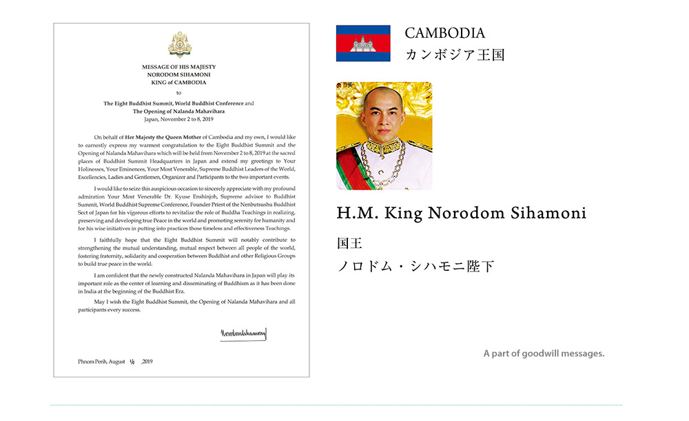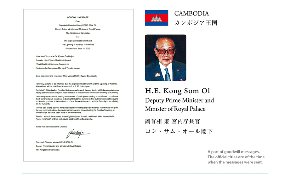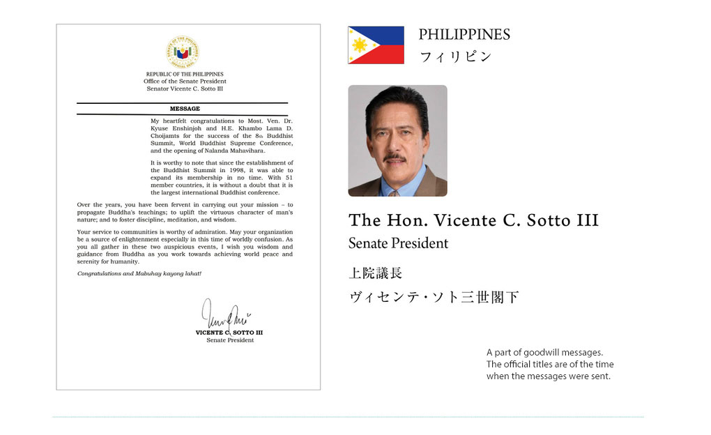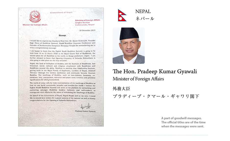 Goodwill Messages sent for the Eighth Buddhist Summit and the Opening of Nalanda Mahavihara, the cherished dream of all Buddhists in the world