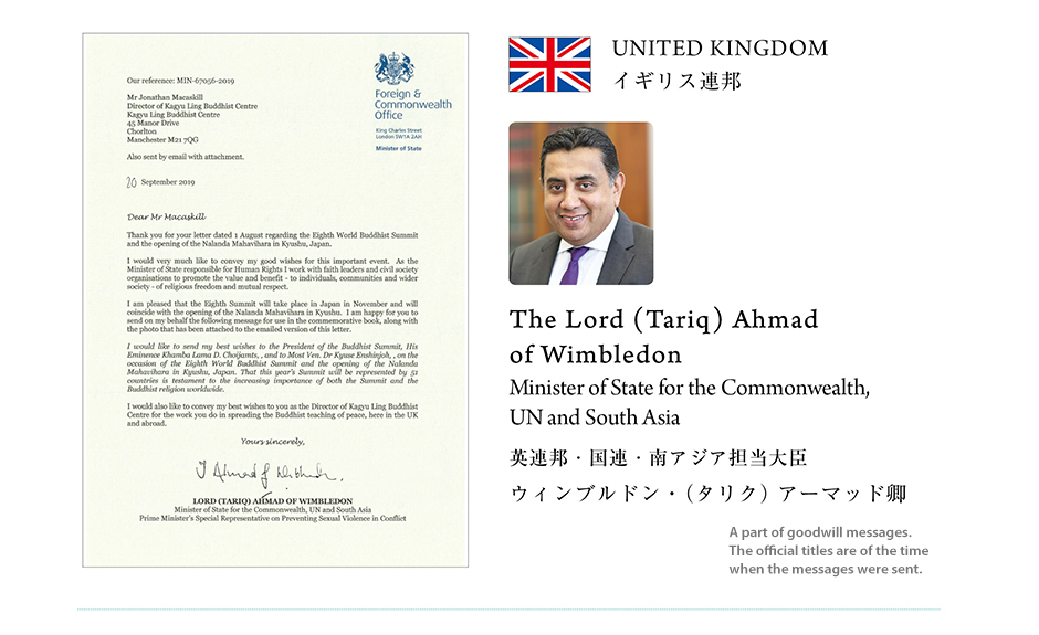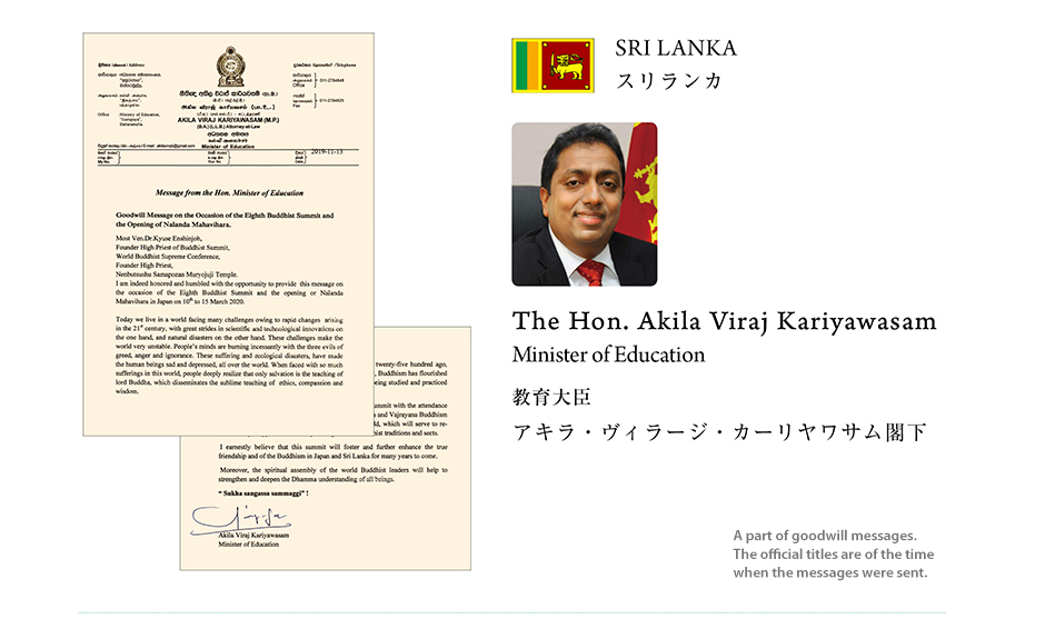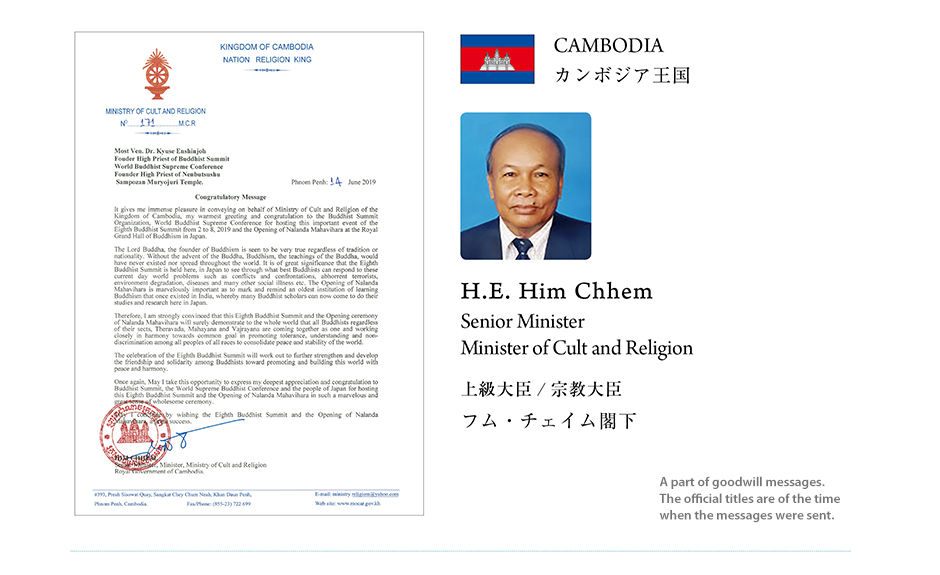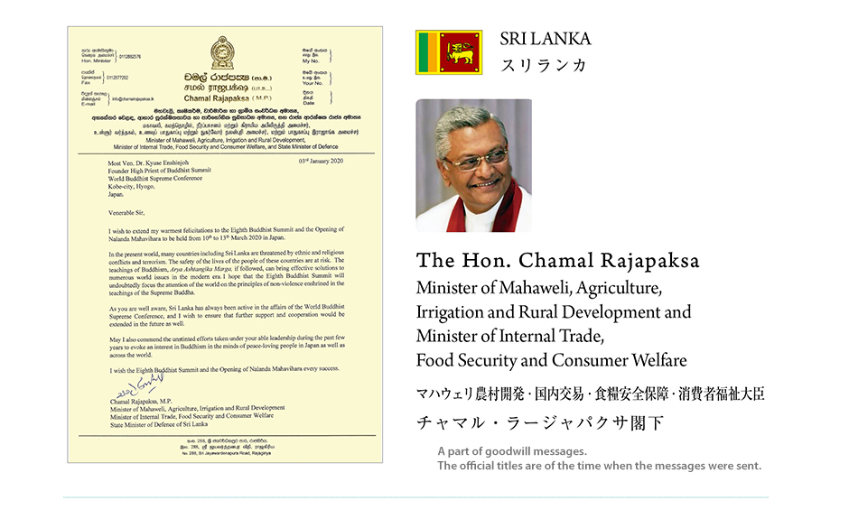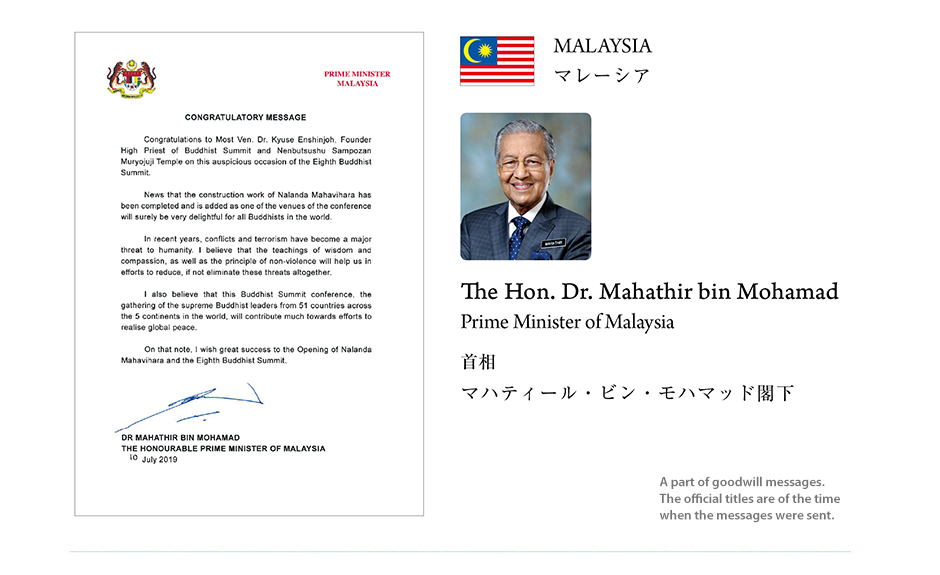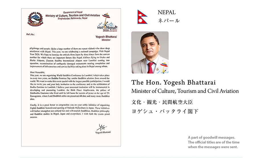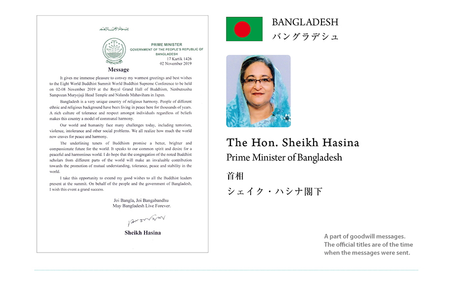 Goodwill Messages sent for the Eighth Buddhist Summit and the Opening of Nalanda Mahavihara, the cherished dream of all Buddhists in the world