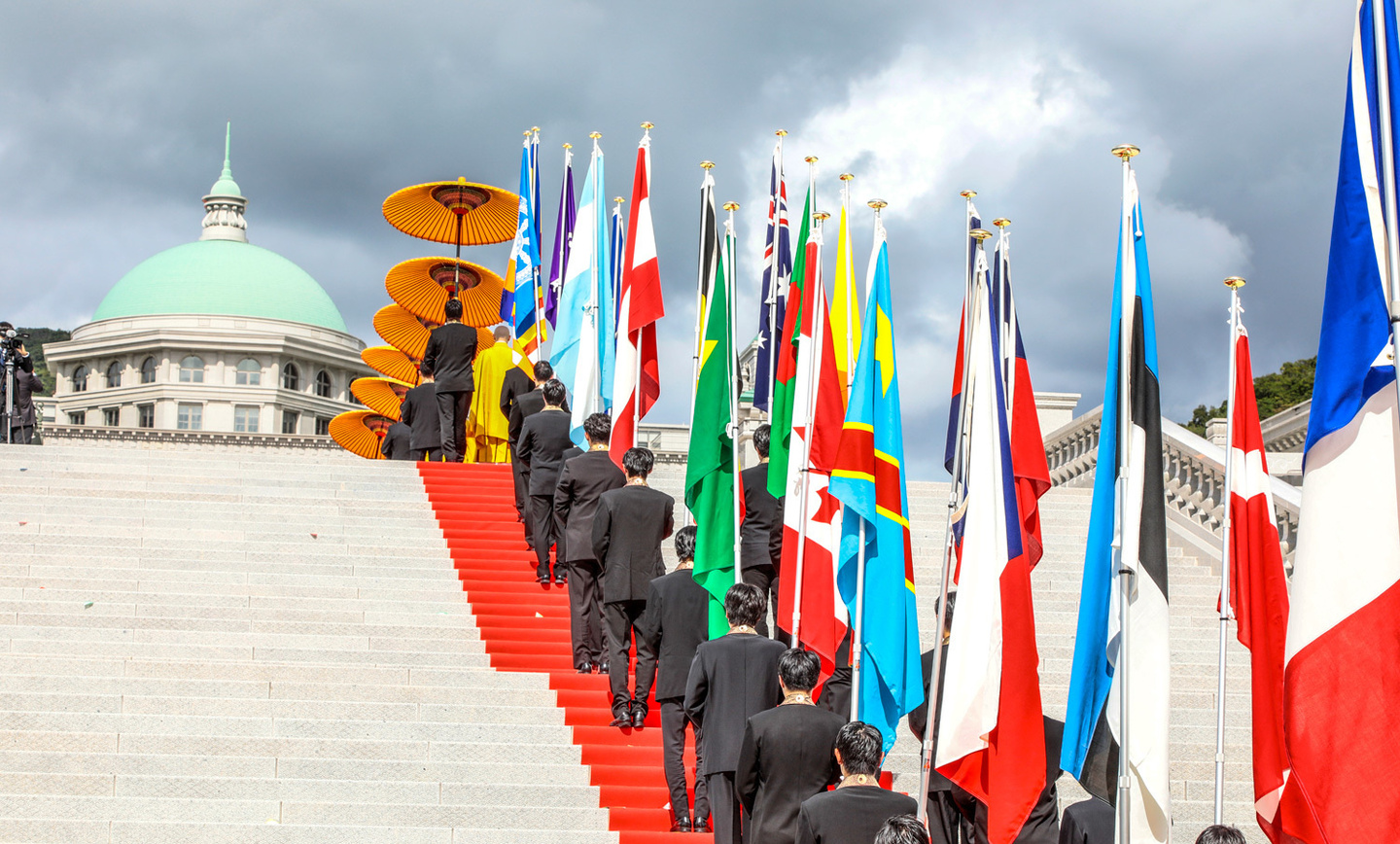 令和5年9月14日から16日にかけて、全世界仏教徒の聖地「佛教之王堂」及び「ナーランダ僧院」において、第八回佛教サミットが開催されました。国際連合、EUを始め、世界各国の王室、国家元首、国家指導者より数多の祝辞を賜る中、全世界五大陸51 ヶ国の佛教サミット加盟国より仏教最高指導者が参加されました。