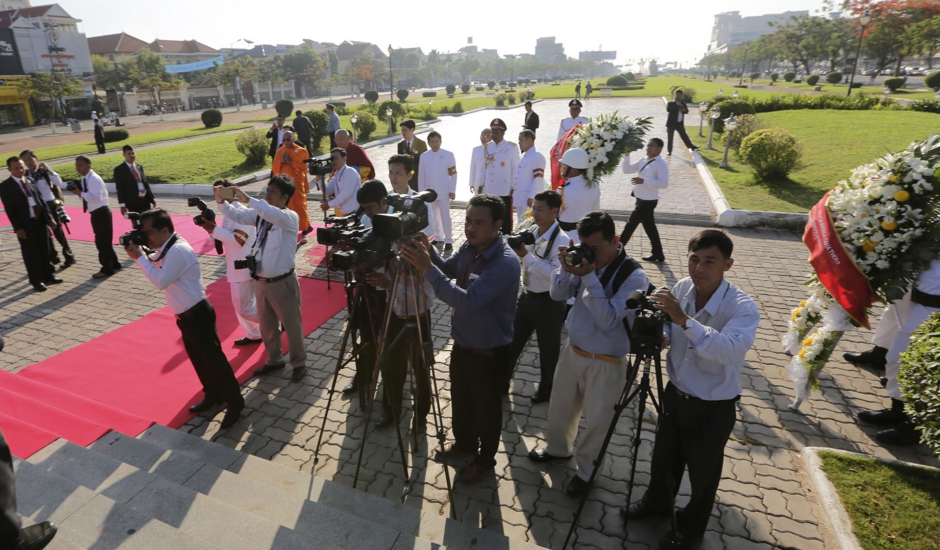 プノンペン都知事の先導により シアヌーク陛下銅像へ献花