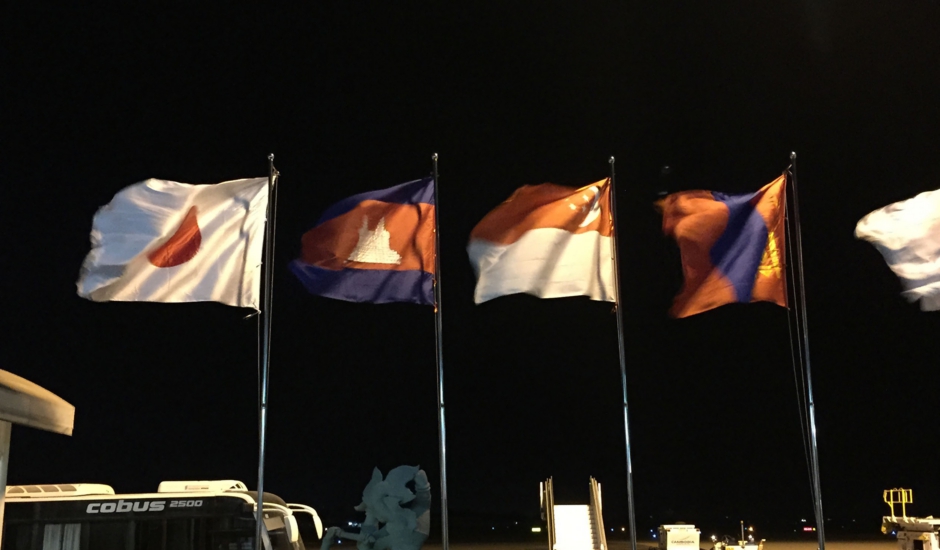 プノンペン国際空港に掲げられた 国家の賓客を歓迎する四ケ国 国旗