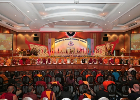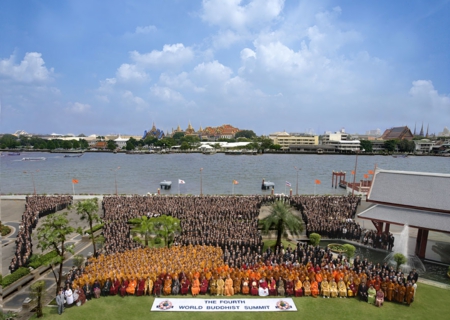 第四回佛教サミットは、2005 年11 月、タイ王国の首都バンコクにて、チュンポーンケット・ウドムサック王子殿下国際会議場を会場として、タイ王国国王陛下御名代シリントーン王女殿下の御臨席を仰ぎ、タクシン首相閣下の御臨席を得て、世界23 ヶ国の仏教最高指導者が一堂に会し、開催されました。