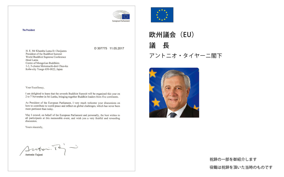 国際機関より、欧州議会(EU)議長閣下をはじめ、ユネスコ事務局長閣下、