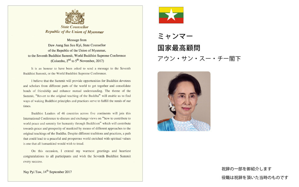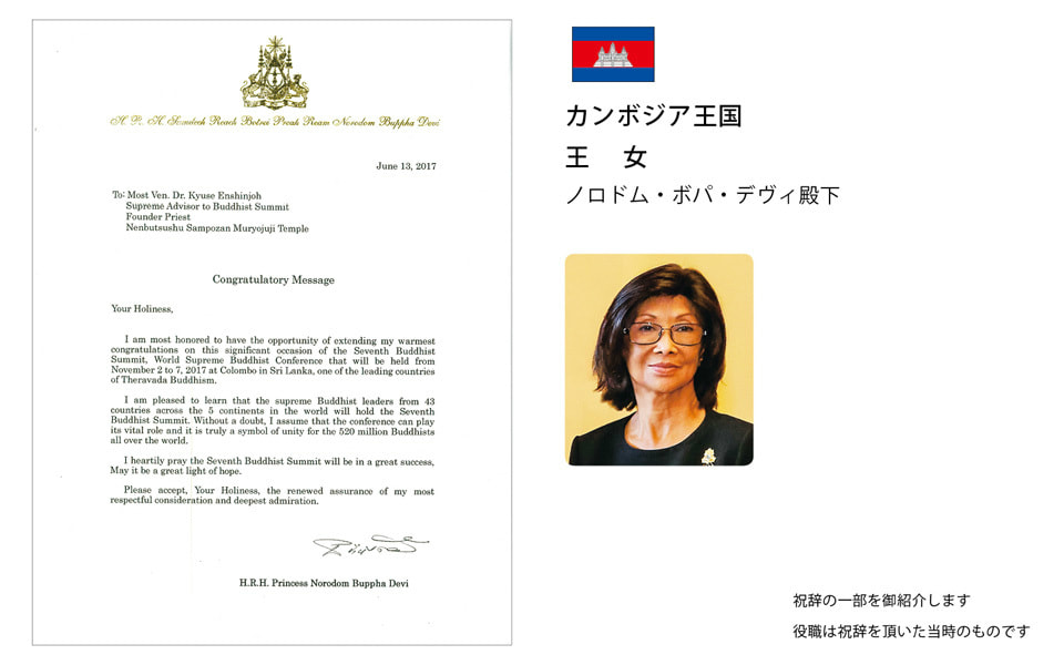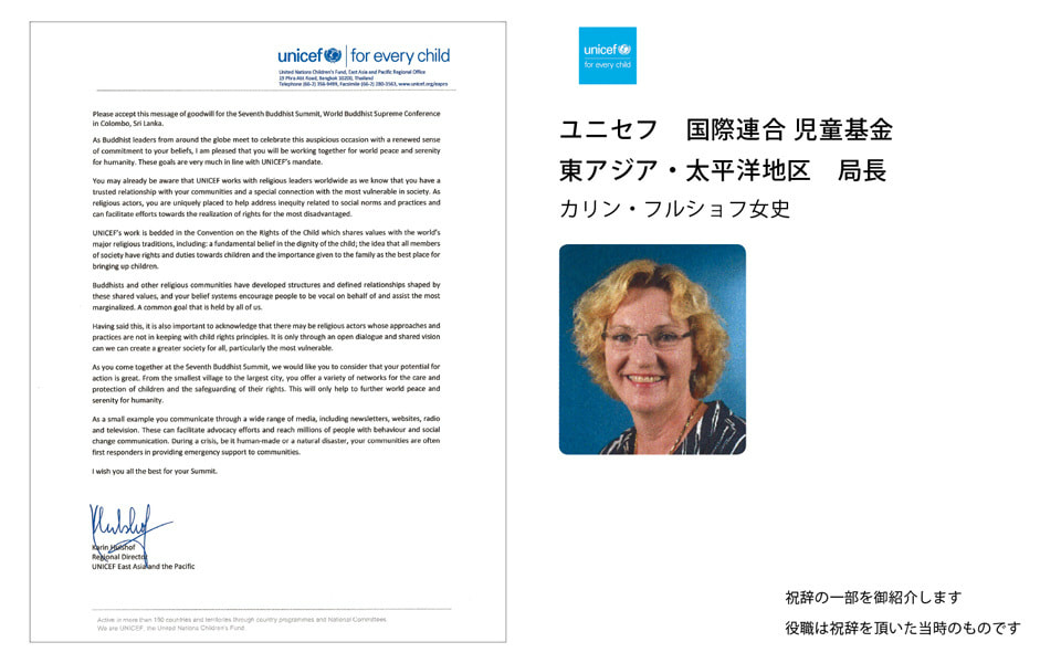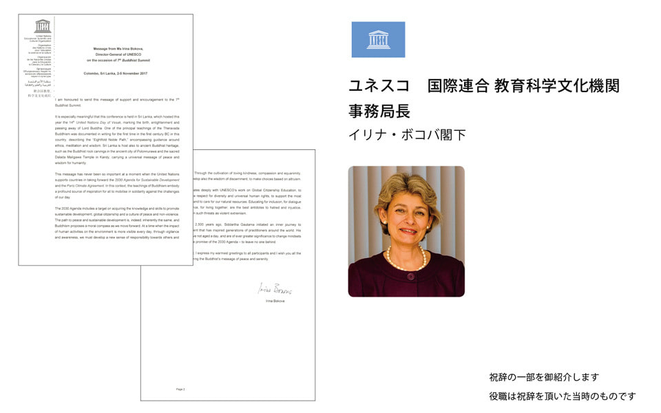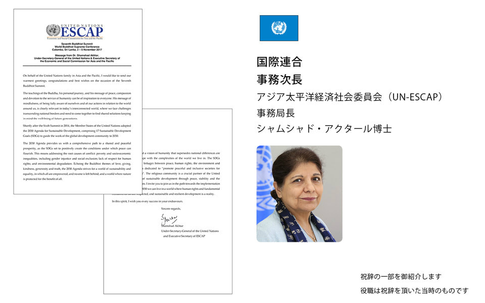 『第七回佛教サミットの 御成功を お祈り申し上げます』とのメッセージが国連事務総長閣下から寄せられ