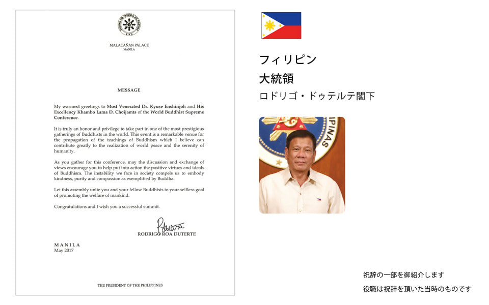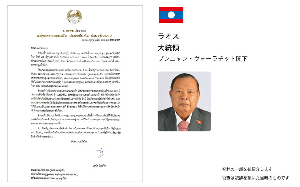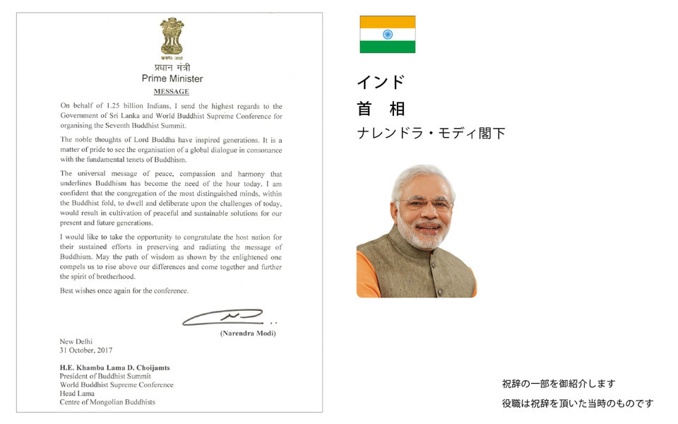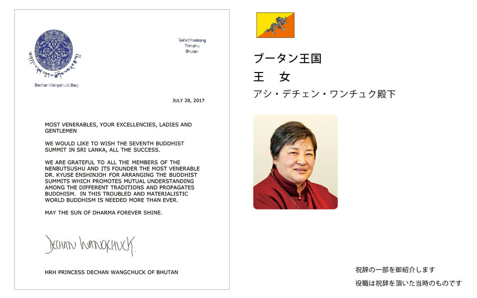 ブータン王室、さらには、数多くの国家指導者より祝辞を賜りましたので、その一部を御紹介します。