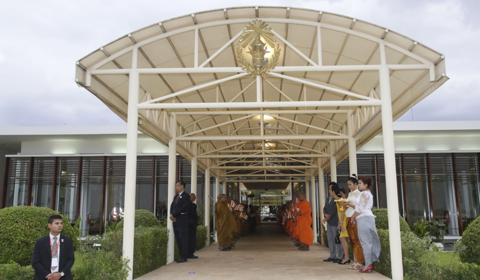 プノンペン国際空港のVIP ルーム玄関でお迎えをする
