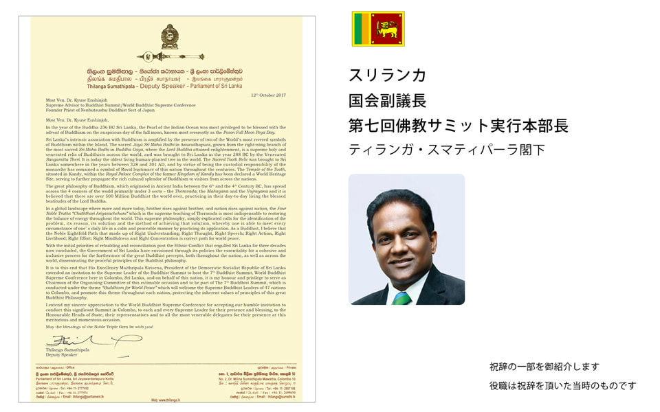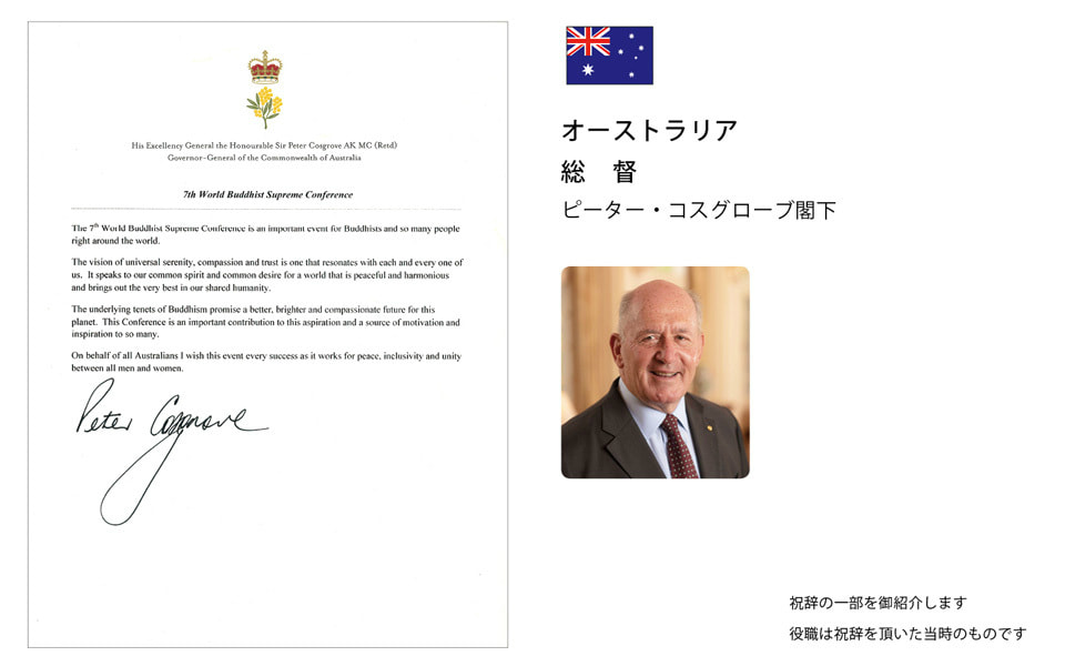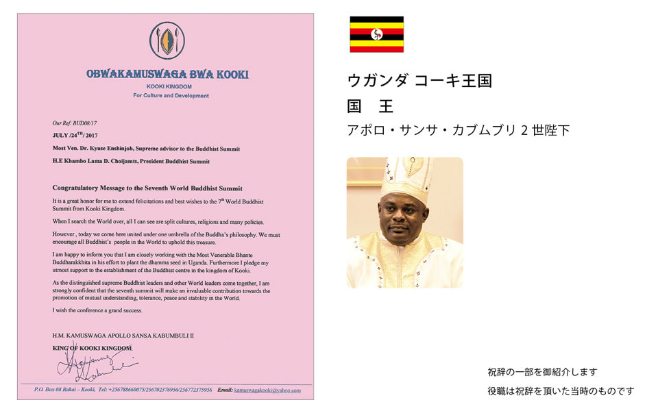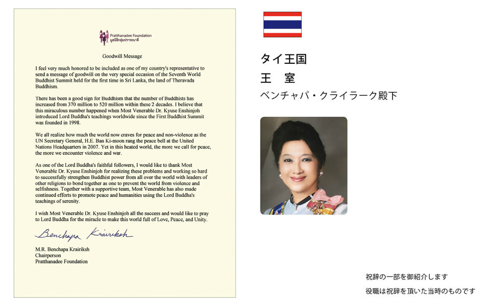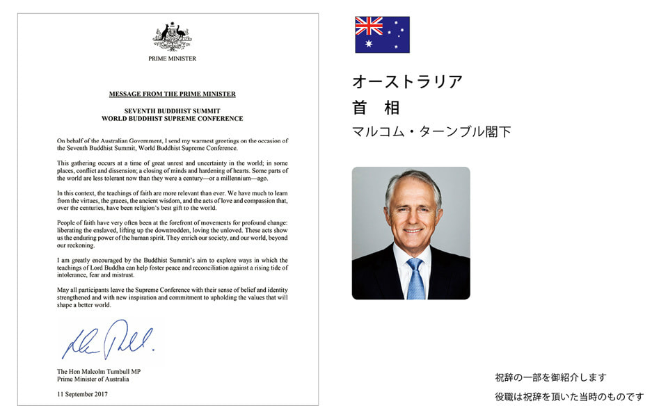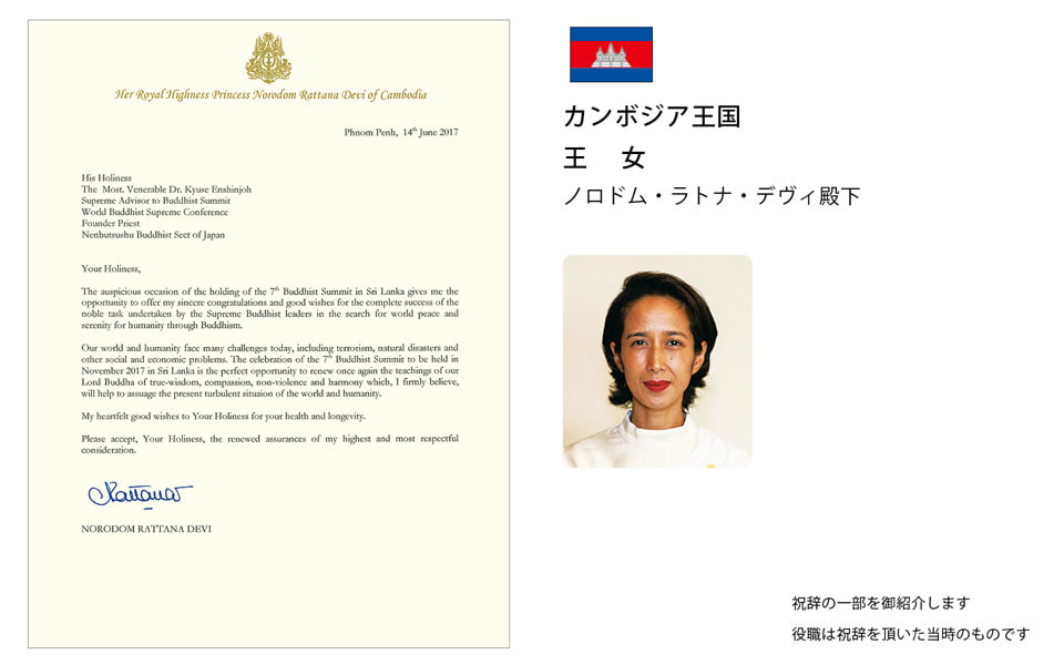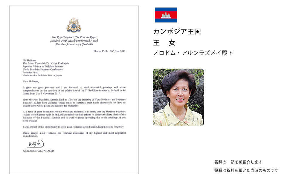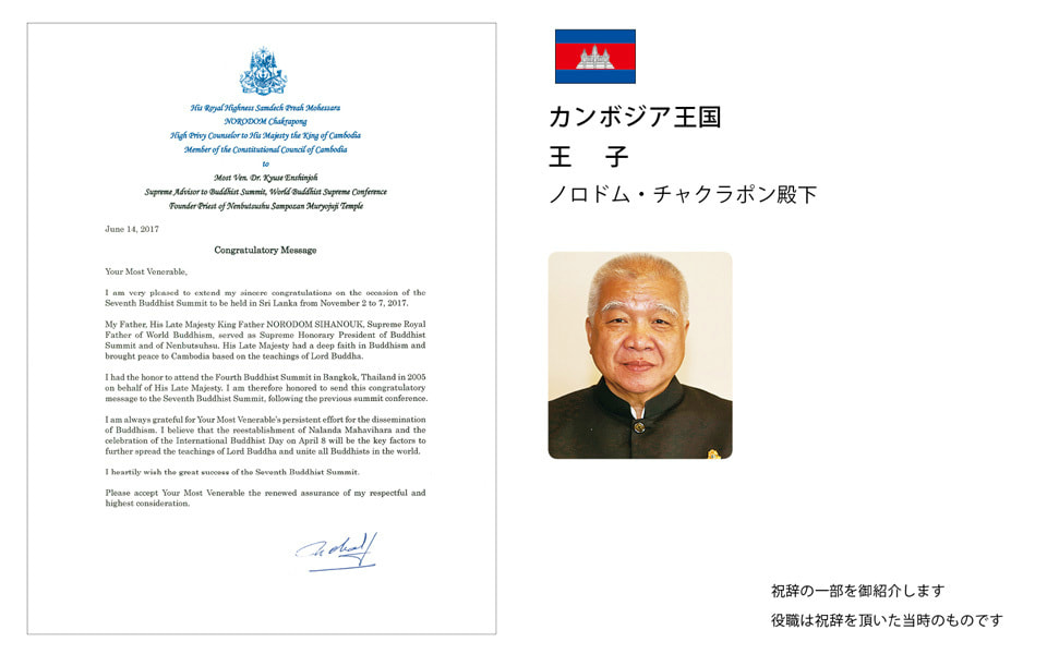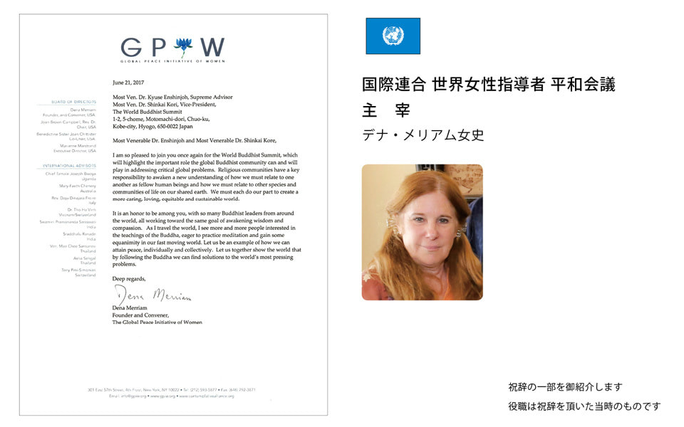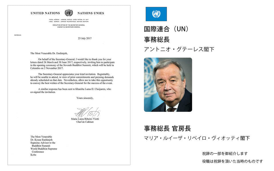『第七回佛教サミットの 御成功を お祈り申し上げます』とのメッセージが国連事務総長閣下から寄せられ
