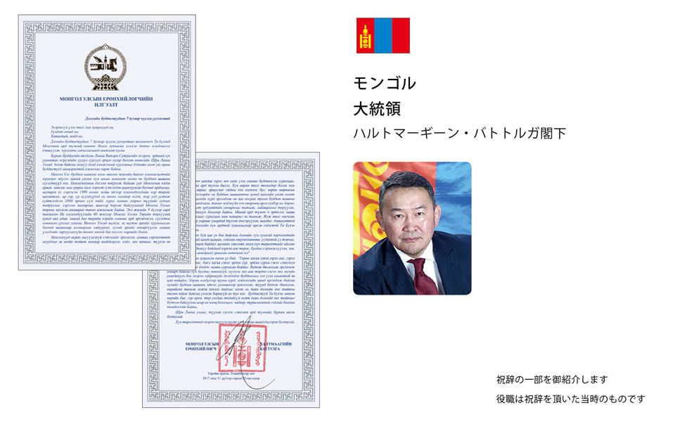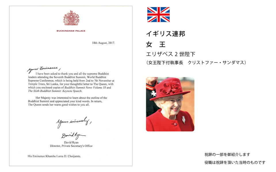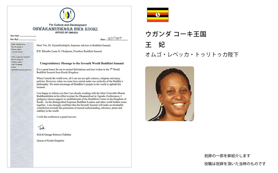 ブータン王室、さらには、数多くの国家指導者より祝辞を賜りましたので、その一部を御紹介します。